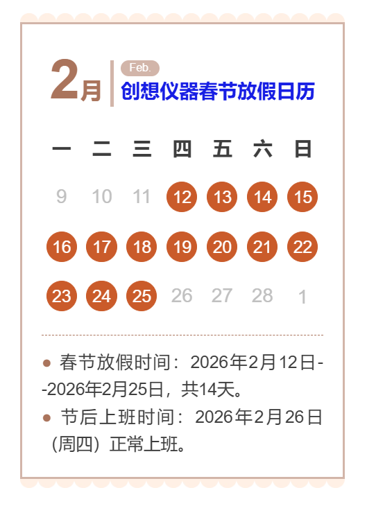 2026年春節(jié)放假通知,無錫創(chuàng)想分析儀器馬年春節(jié)放假通知: